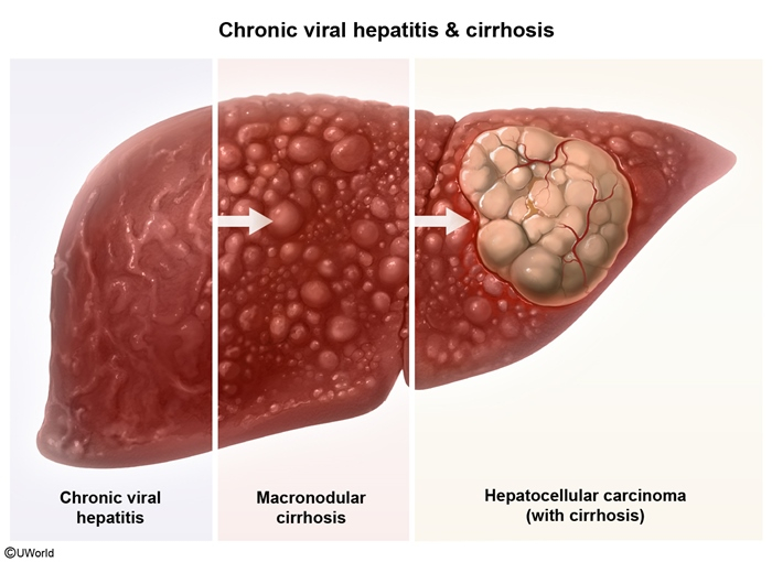 - Can lead to cirrhosis and hepatocellular carcinoma (HCC)