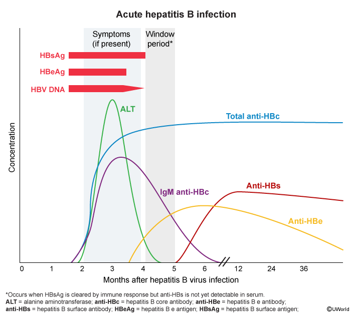 - Acute HBV infection: Self-limited liver inflammation lasting <6 months