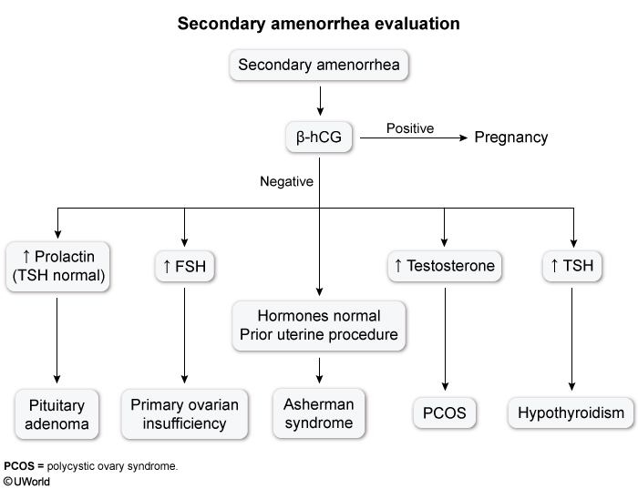 - A pregnancy test should be the first investigation in all cases of secondary amenorrhea