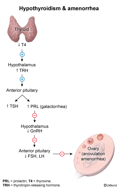 - Ovulatory Dysfunction: Amenorrhea may occur when ovulation is irregular or absent: