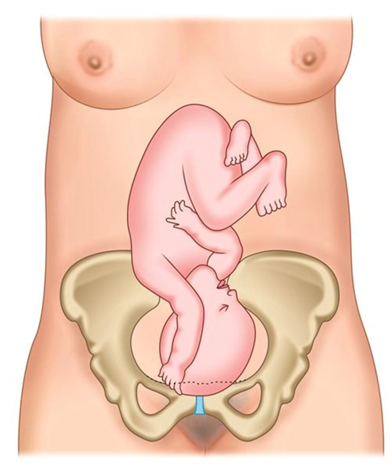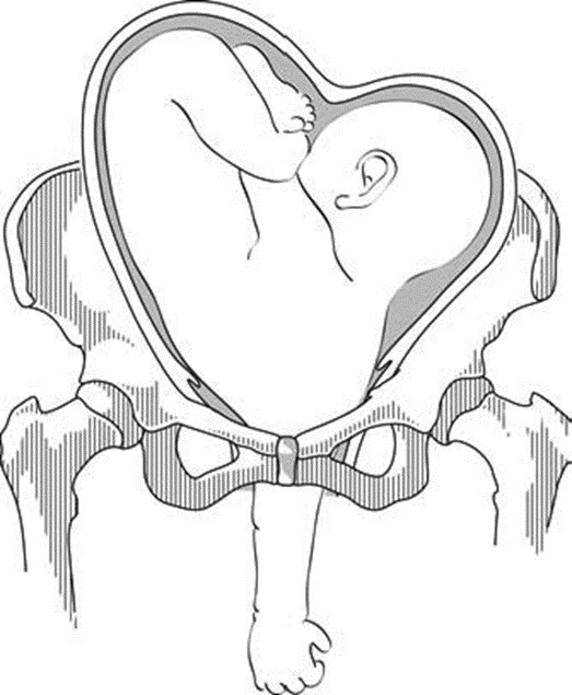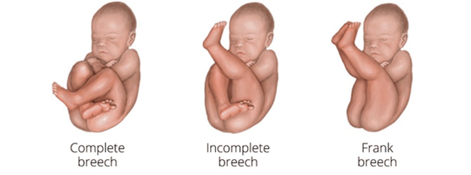 - Complete Breech: Both knees and hips are flexed, and the buttocks or feet may enter the birth canal first.