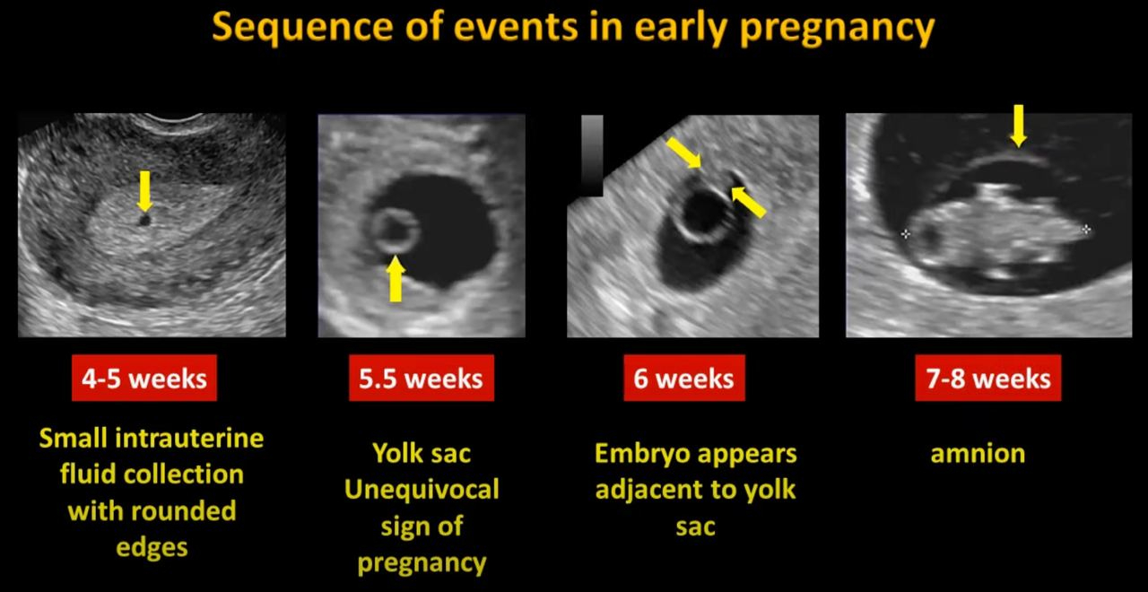 - Yolk Sac: Visible between 5 to 6 weeks of gestation, the yolk sac is essential for the embryo's early development, remaining until approximately 10 weeks.