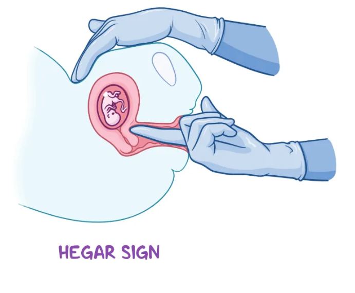 - Hegar's Sign: Softening of the lower segment of the uterus, noticeable between 6–8 weeks.