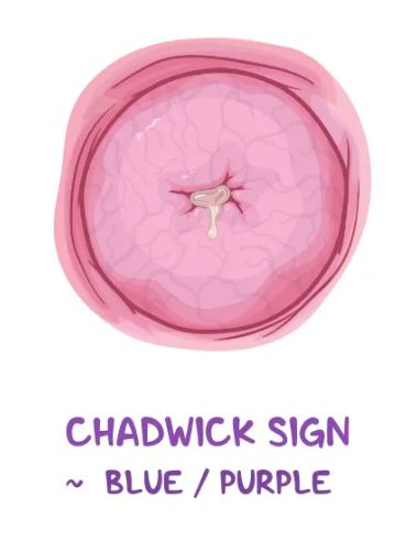 - Chadwick's Sign: Bluish discoloration of the vagina and cervix, visible between 6–8 weeks.