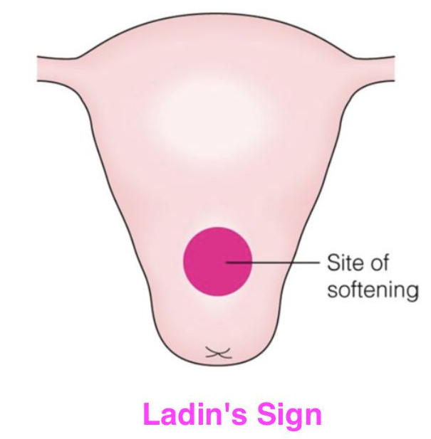 - Ladin's Sign: Softening of the midline of the uterus, apparent in the first 6 weeks.