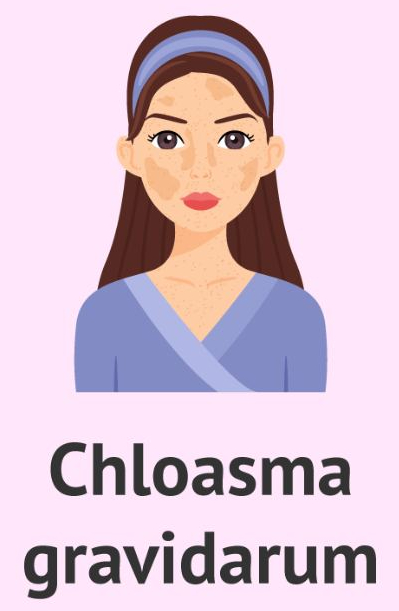 - Chloasma: Hyperpigmentation of the face (forehead, cheeks, nose), typically in the first 16 weeks.