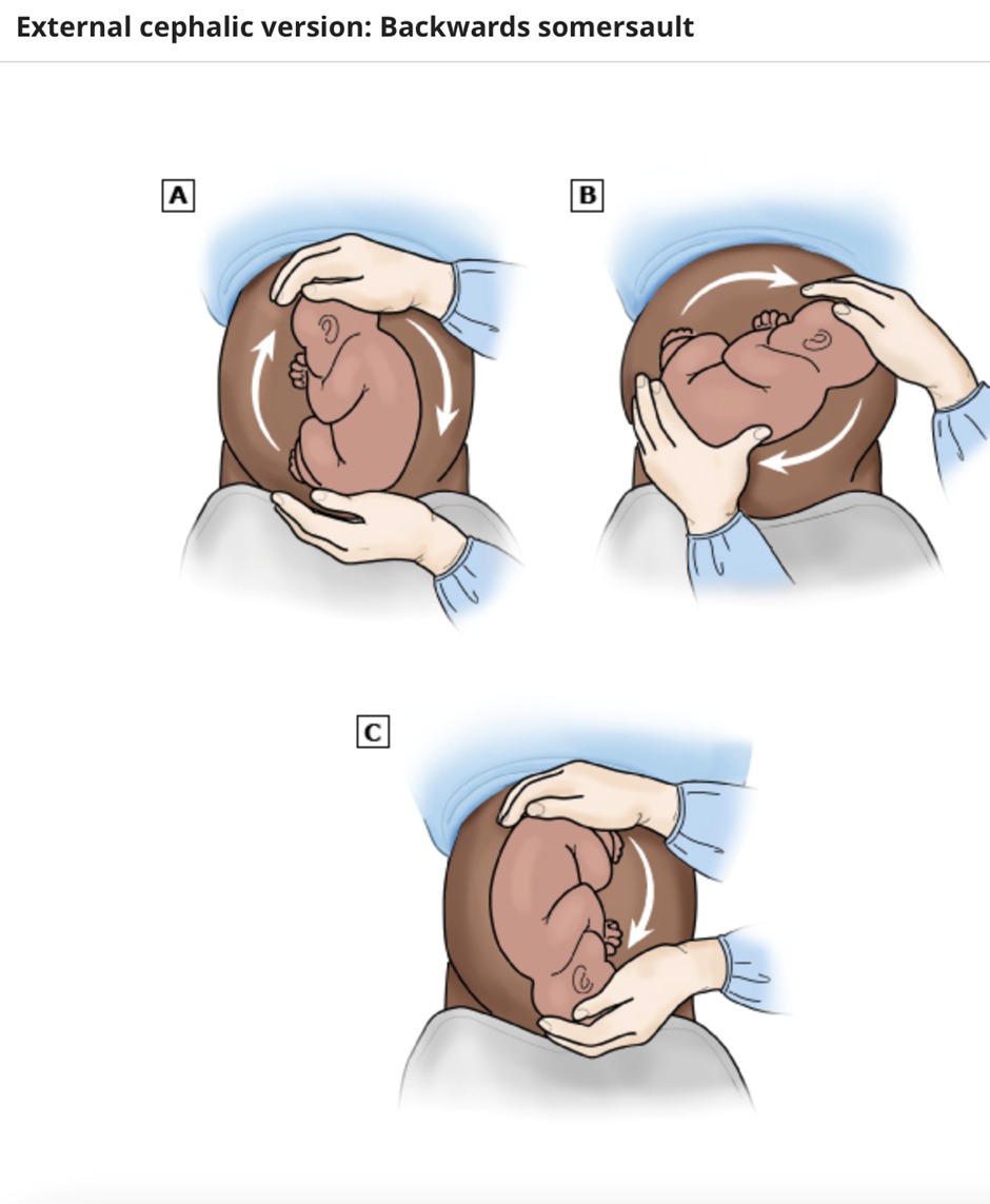 - Applying tocolysis to relax the uterus, improving the chances of a successful version.