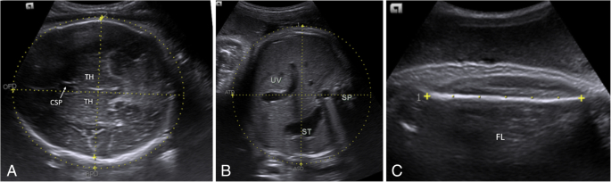 - Fetal biometric measurements, including biparietal diameter (BPD), femur length (FL), abdominal (AC), and head circumferences (HC)