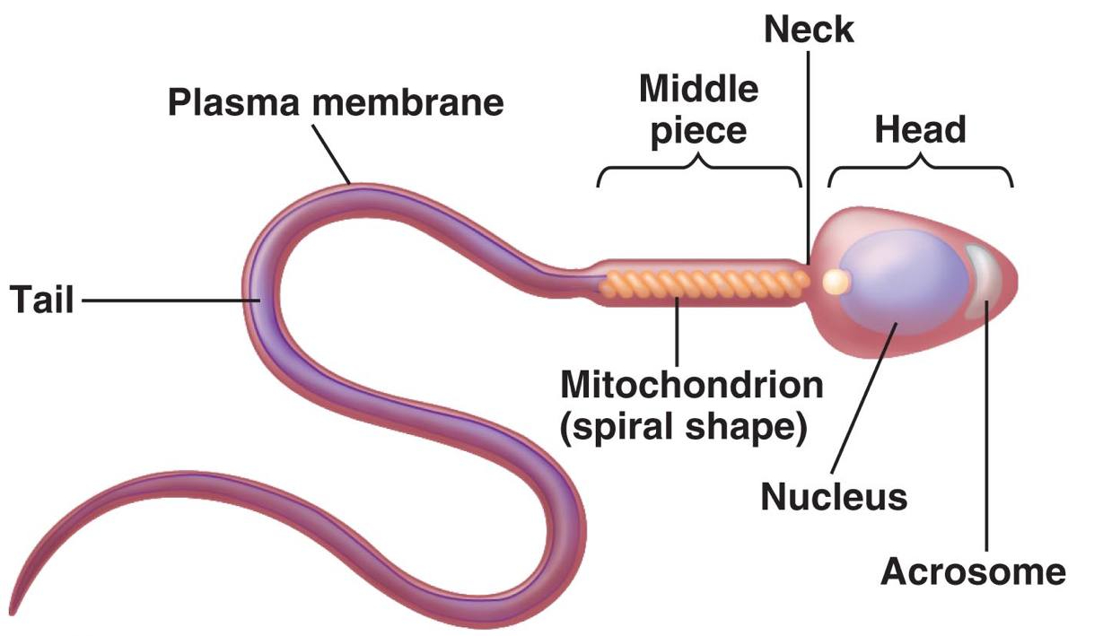 - Structure: A sperm cell is composed of a head, which contains the nucleus and the acrosome (a cap-like structure rich in enzymes necessary to penetrate the oocyte), a midpiece packed with mitochondria to provide energy for movement, and a tail (flagellum) that propels the sperm towards the oocyte.