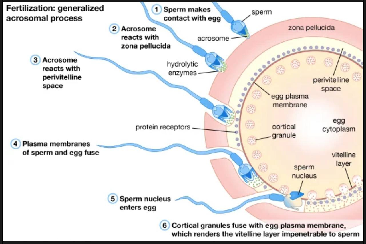 - Mechanism of Action: During fertilization, the sperm's acrosome reacts with the zona pellucida (the outer layer of the oocyte) in a process known as the acrosome reaction. This reaction releases enzymes that allow the sperm to penetrate the zona pellucida and fuse with the oocyte membrane, leading to the fusion of sperm and oocyte to form a single-cell zygote.
