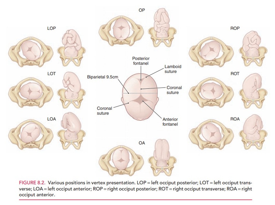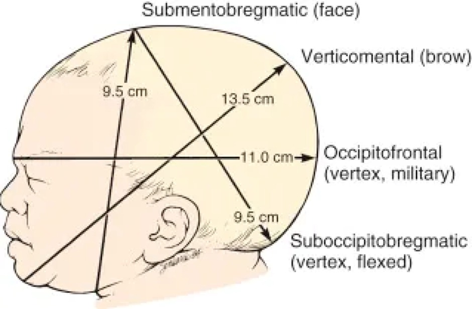 - Vertex ( Occiput ) Presentation ( suboccipitobregmatic diameter 9.5 cm or occipitofrontal diameter ( 11.5 cm ) )