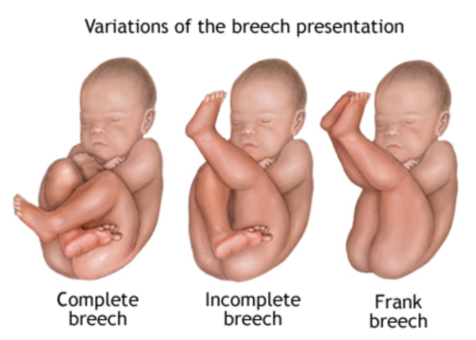 - Prevalence: 50 - 70 percent of breech fetuses at term.