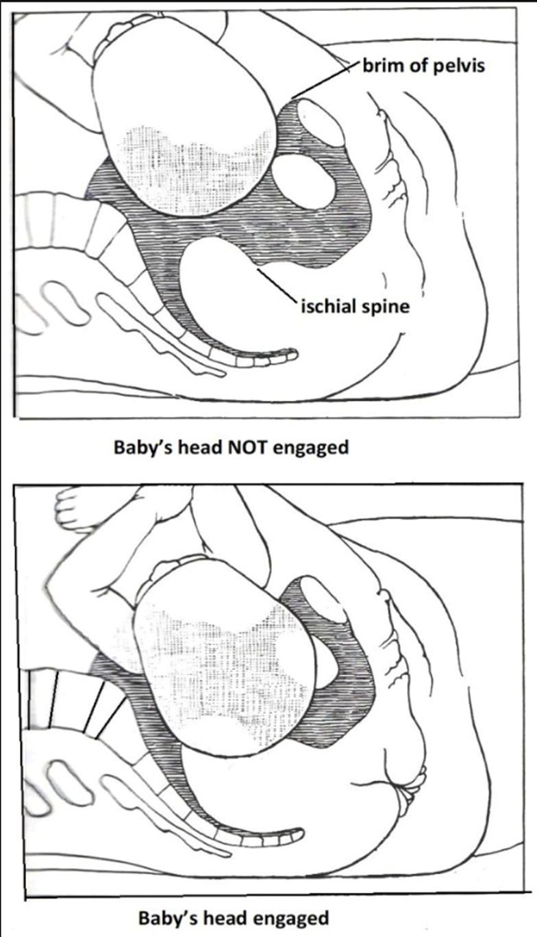 - When 2/5 or less of the fetal head is palpable above the symphysis pubis, the head is considered engaged in the pelvis.