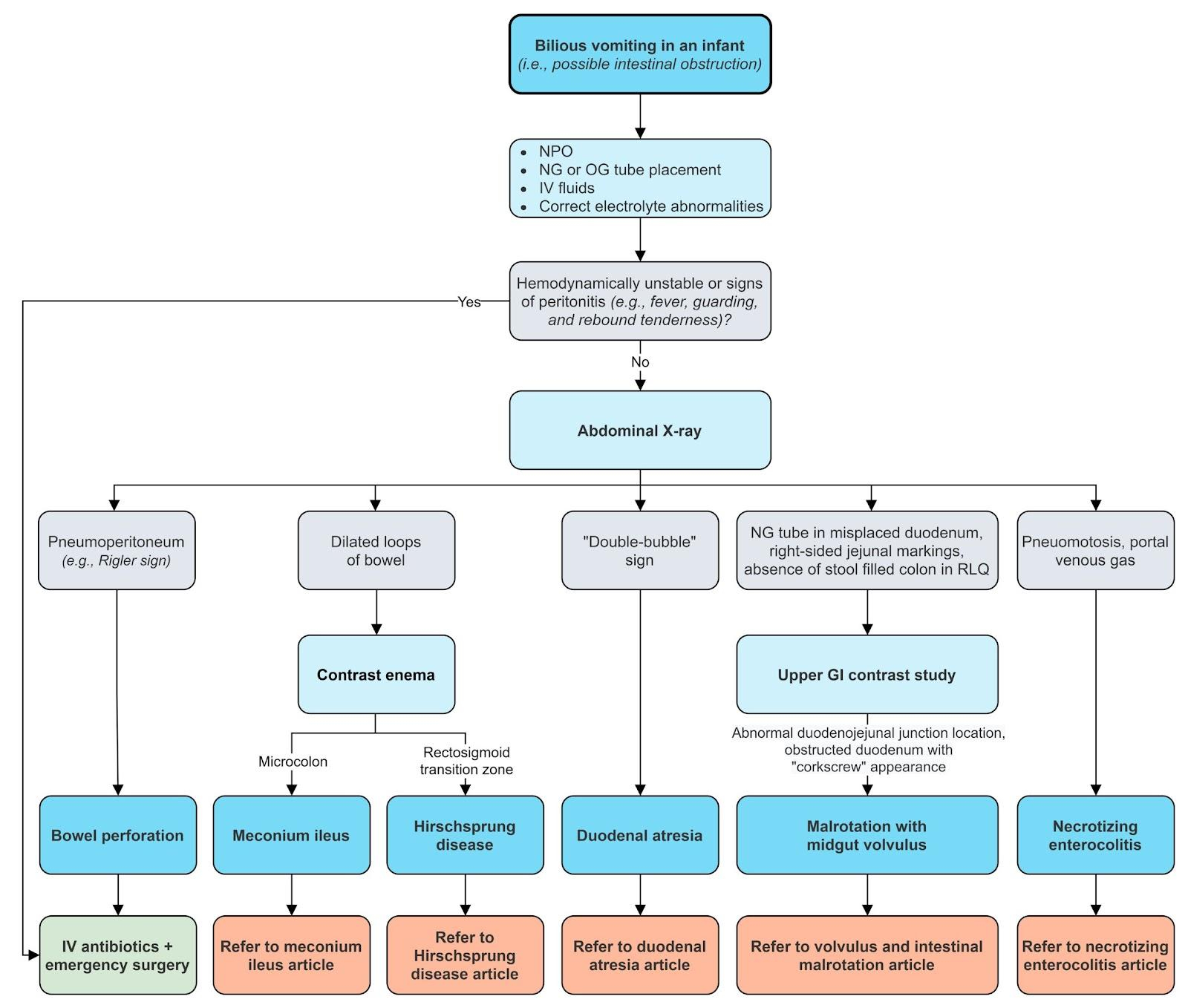 - Intestinal atresia is the most common cause of obstruction in the neonatal period.