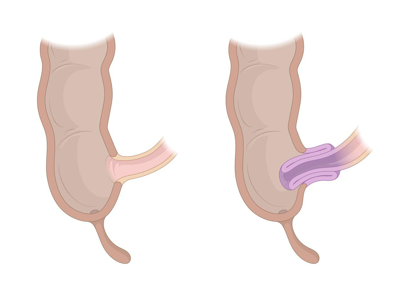- Intussusception is invaginating or telescoping of a proximal bowel segment into a distal segment (most commonly occurs at the ileocecal junction).