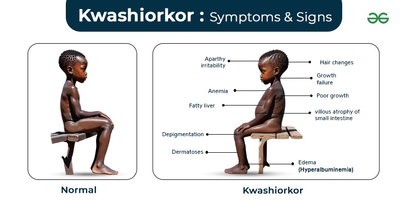 - Severe wasting due to nutritional deficiency of both protein, and total caloric intake.