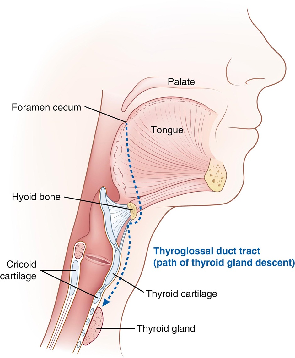 - Sistrunk procedure: Must remove central hyoid bone