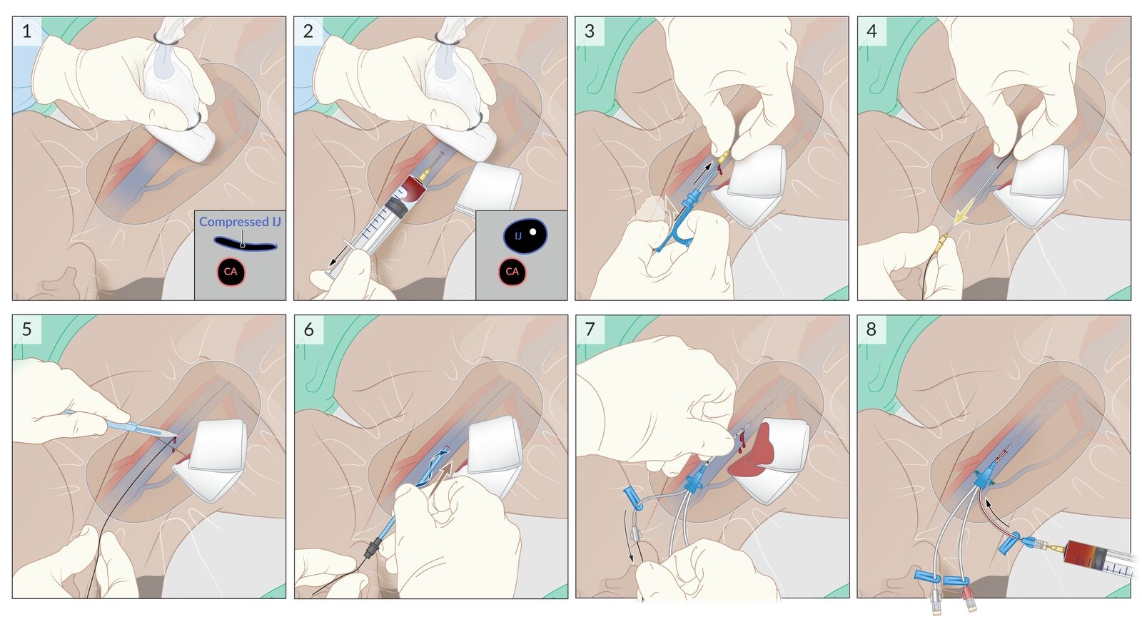 - Rapid introduction of large volumes of fluid through multiple large-bore (16G or wider) peripheral venous catheters is preferred to resuscitate patients with hypovolemic shock