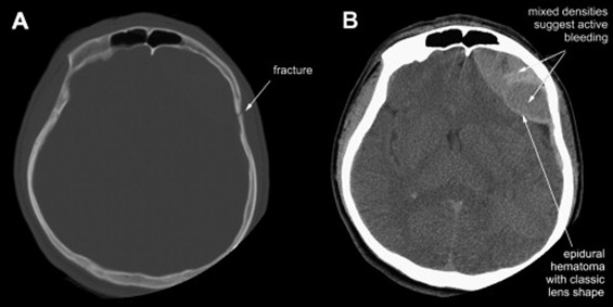 - A typical clinical scenario includes transient loss of consciousness followed by recovery (lucid interval) and then subsequently followed by rapid deterioration due to hematoma expansion