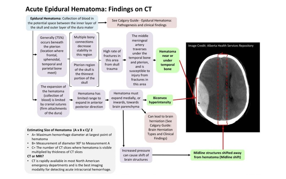 - An epidural hematoma is a collection of blood within the space between dura mater and the skull. It is confined by the lateral sutures ( the coronal sutures)