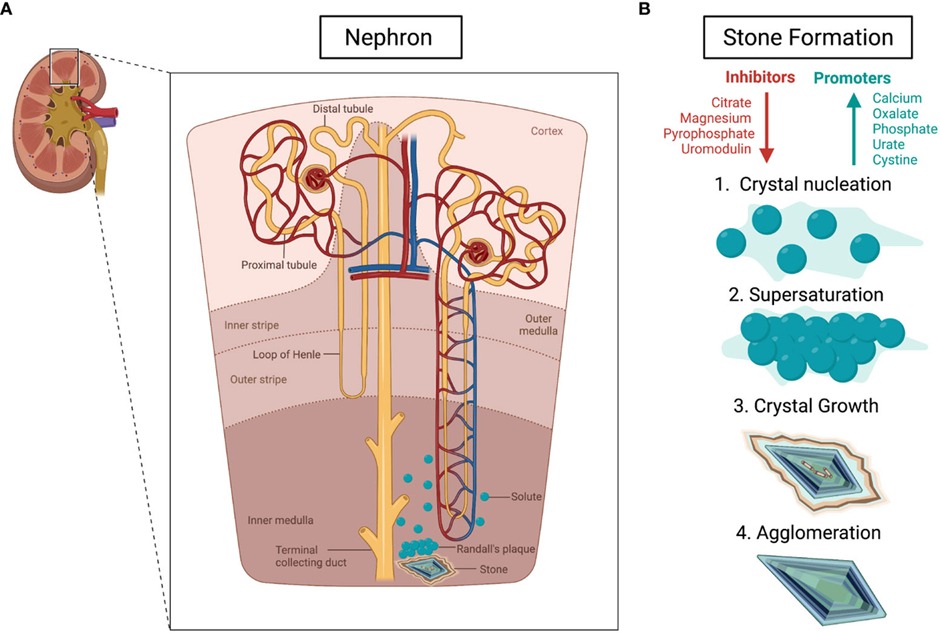 - Renal stones are formed secondary to substance precipitation affecting the kidney and the ureter